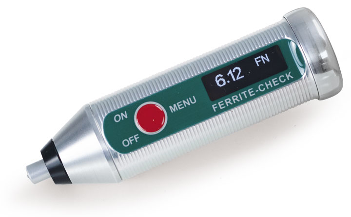 德国菲希尔FERITSCOPE DMP30铁素体检测仪应用于检测奥氏体钢和双向钢的铁素体含量,检测奥氏体材料中的转化形式马氏体,寻找抛光表面中的焊缝,检测焊缝铁素体含量。